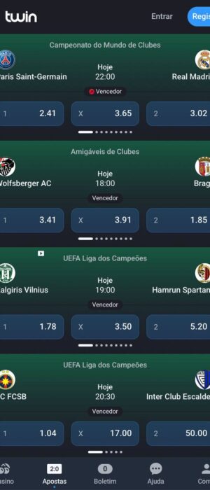 Podes apostar ao vivo e beneficiar das odds dinâmicas da casa de apostas Twin, que é já muito conhecida por oferecer sempre as melhores odds e mais competitivas para apostar ao vivo!