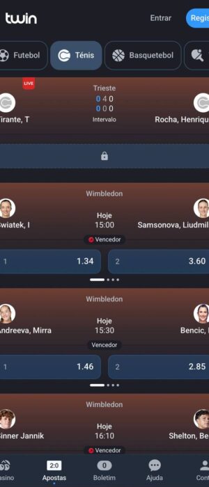 A Twin é uma plataforma completa para fazeres as tuas apostas desportivas tranquilamente e com as melhores odds, por isso regista-te agora mesmo, resgata o bónus de boas-vindas e aposta no teu desporto favorito com a Twinbet.